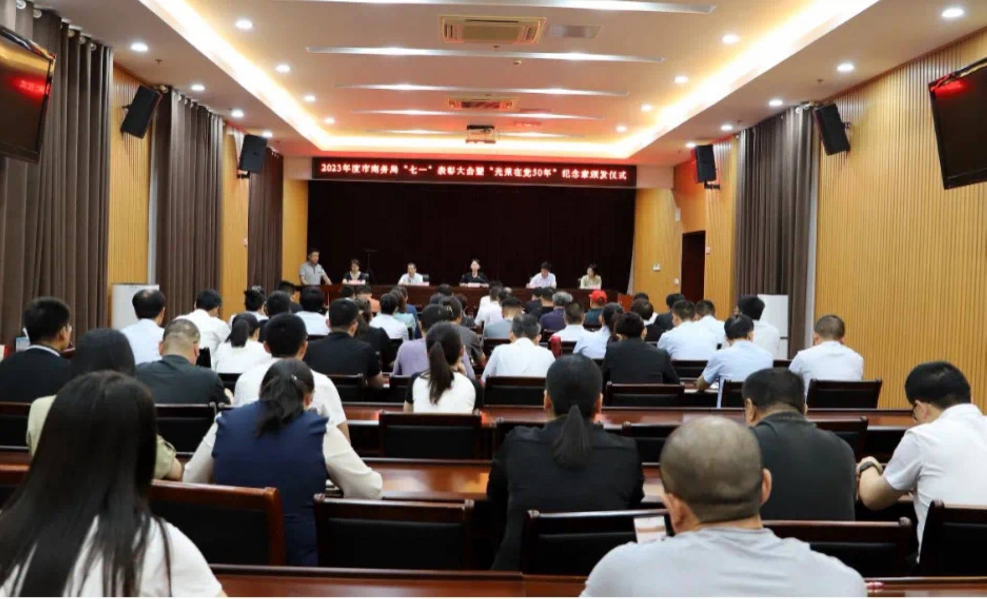 7月1日上午,市商務(wù)局舉行2023年度“七一”表彰大會(huì )暨“光榮在黨50年”紀念章頒發(fā)儀式。