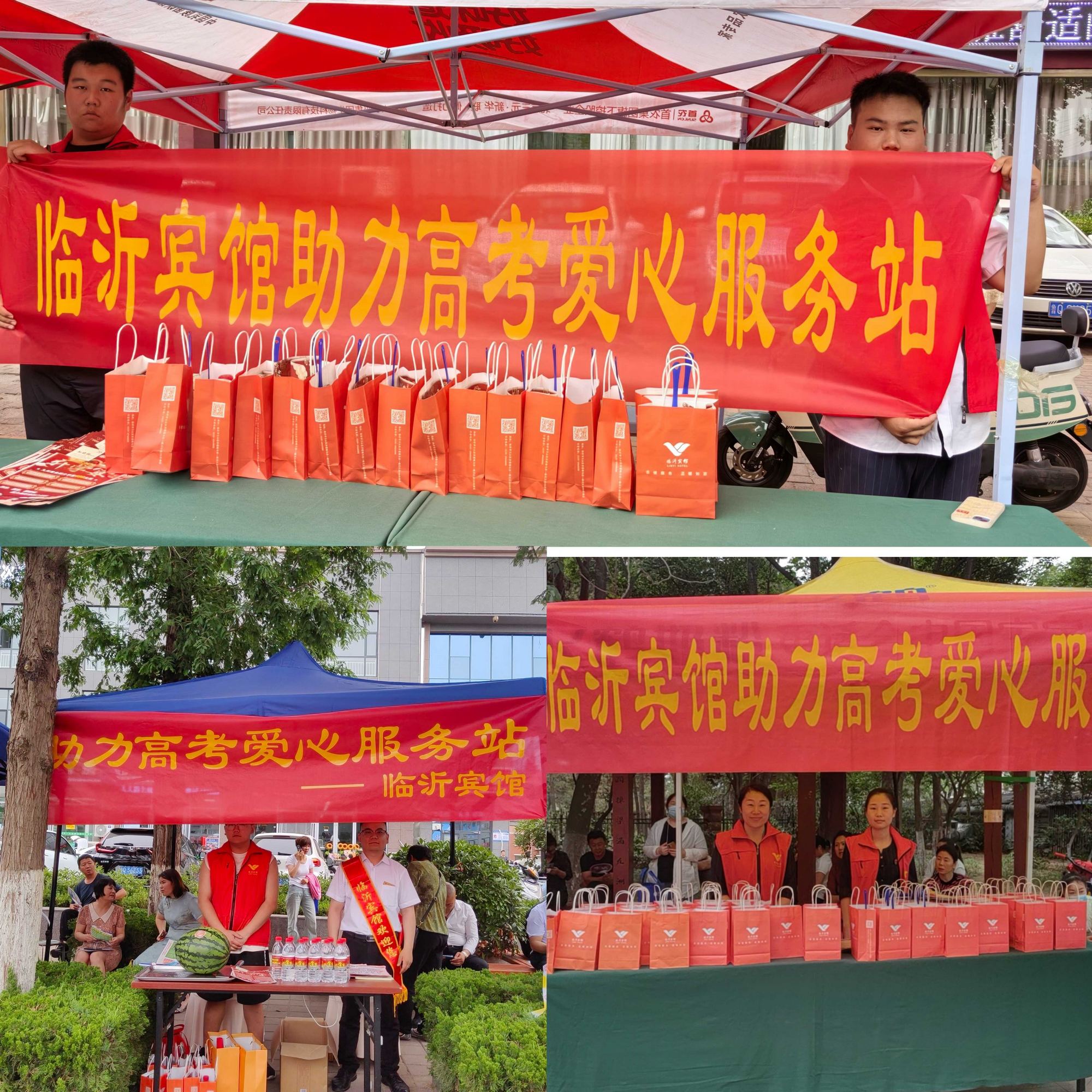 臨沂賓館組織員工分批次到臨沂一中、二中、四中、七中、二十四中等考點(diǎn)外設立 “愛(ài)心服務(wù)站”,為考生及家長(cháng)發(fā)放臨沂賓館自制的粽子、五彩手鏈和香囊,并提供礦泉水、扇子、西瓜、愛(ài)心手提袋等物品,在炎炎夏日里為陪考家長(cháng)送去一份清涼和節日祝福,給考生加油打氣。