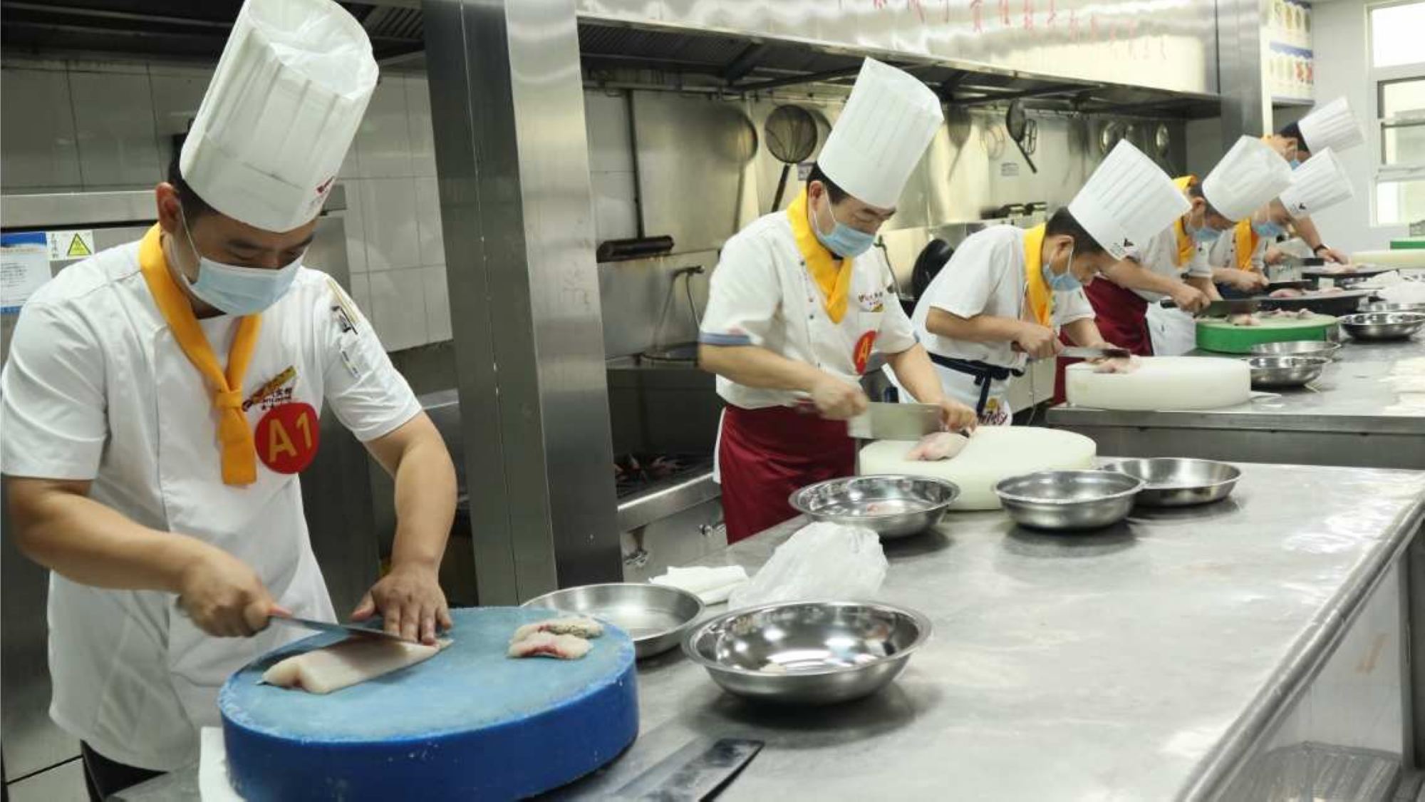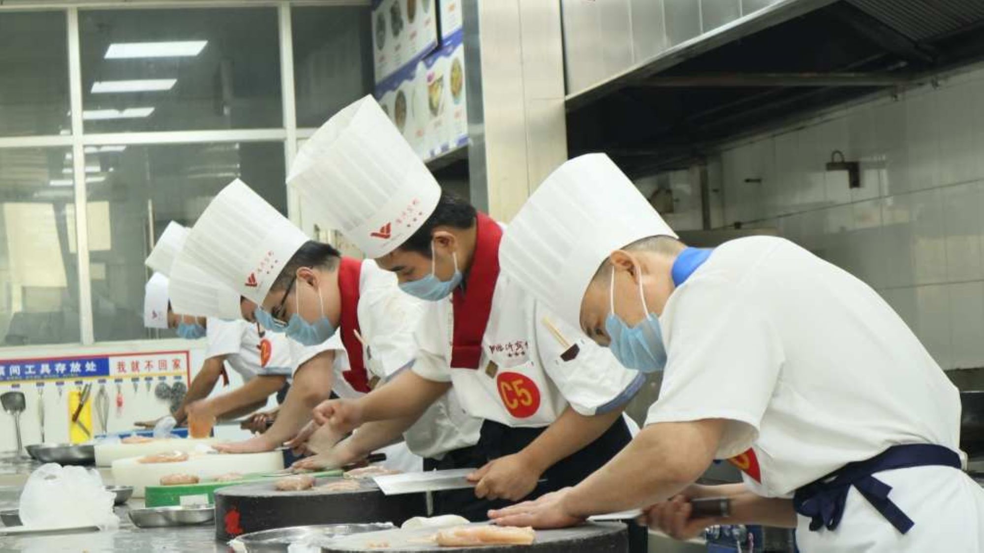 此次刀工比武設廚師長(cháng)組,大廚組和二廚、廚工組。廚師長(cháng)組比賽內容為將草魚(yú)肉切菊花刀并制作菊花魚(yú)裝盤(pán)、內酯豆腐切絲;大廚組比賽內容是將豬腰切麥穗花刀并焯水、地瓜切絲;二廚、廚工組則需要將雞脯肉切絲上漿滑油、土豆切細絲。比賽現場(chǎng),選手們全神貫注,精心操作每一份食材。這些刀工操作看似簡(jiǎn)單,實(shí)則需要極高的熟練度和細致的手法,全面考察參賽選手們的刀工水平和時(shí)間安排。評委們對選手現場(chǎng)操作和成品進(jìn)行評判打分。經(jīng)過(guò)綜合評比,沂蒙路店貴賓樓廚師長(cháng)閆中鋒、沂蒙路店貴賓樓大廚張立偉和九州美食園二廚李丙軍分別獲得各組別第一名;九州美食園廚師長(cháng)劉延強、沂蒙路店貴賓樓大廚虢金德、開(kāi)發(fā)區店二廚孫艷鑫分別獲得各組別第二名;九州美食園廚師長(cháng)王立濤、開(kāi)發(fā)區店大廚張慶龍和貴賓樓二廚王永豪分別獲得各組別第三名。