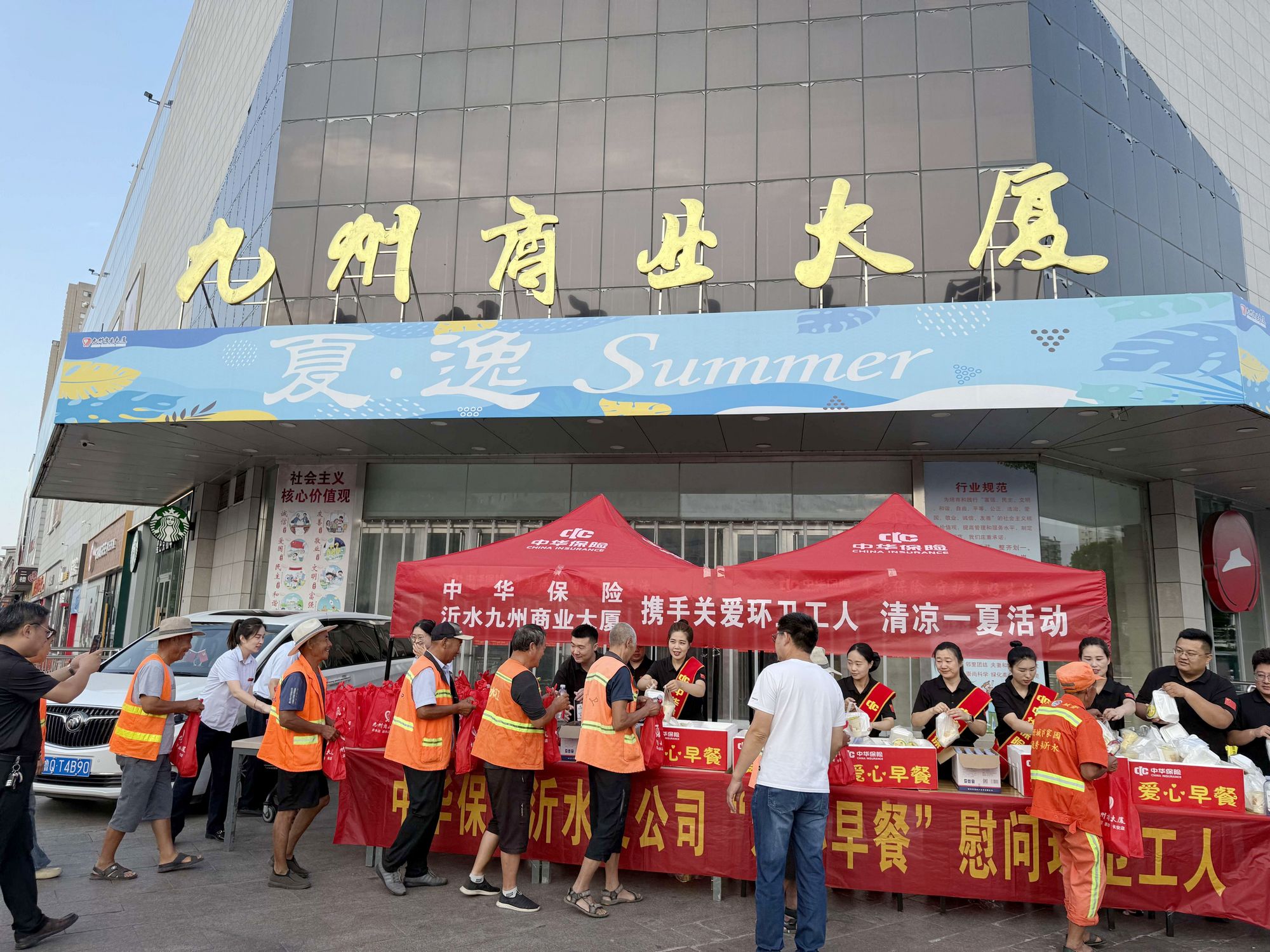 7月15日早上,九州商業(yè)大廈沂水門(mén)店攜手中華保險公司,在長(cháng)安店門(mén)前廣場(chǎng)聯(lián)合開(kāi)展了“攜手關(guān)愛(ài)環(huán)衛工人 清涼一夏”公益活動(dòng),為150余名一線(xiàn)環(huán)衛工人發(fā)放早餐與清涼禮包,在炎炎夏日為城市的“美容師”送去清涼與關(guān)懷。
