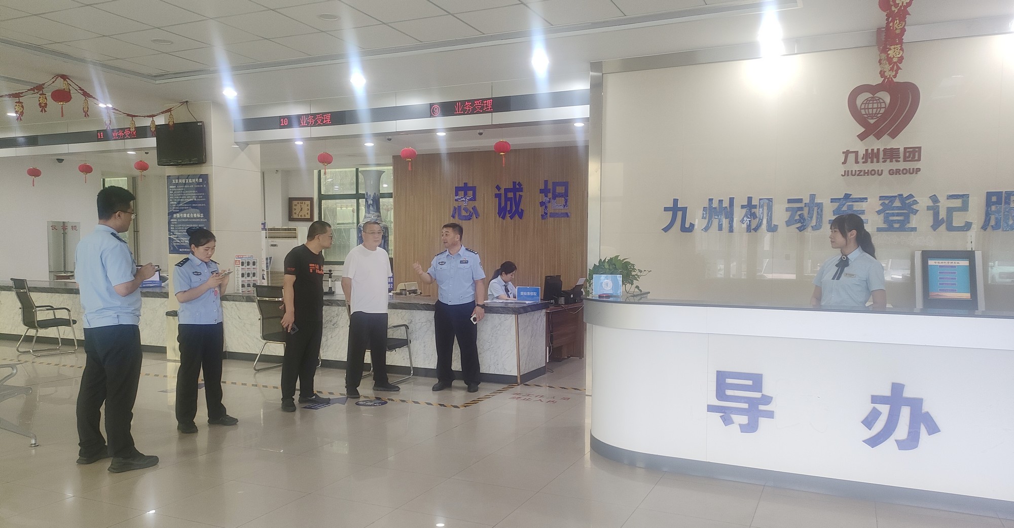 8月13日,市車(chē)管所直屬二分所科長(cháng)王來(lái)賓一行到九州機動(dòng)車(chē)登記服務(wù)站視察工作,九州機動(dòng)車(chē)登記服務(wù)站負責人陪同。