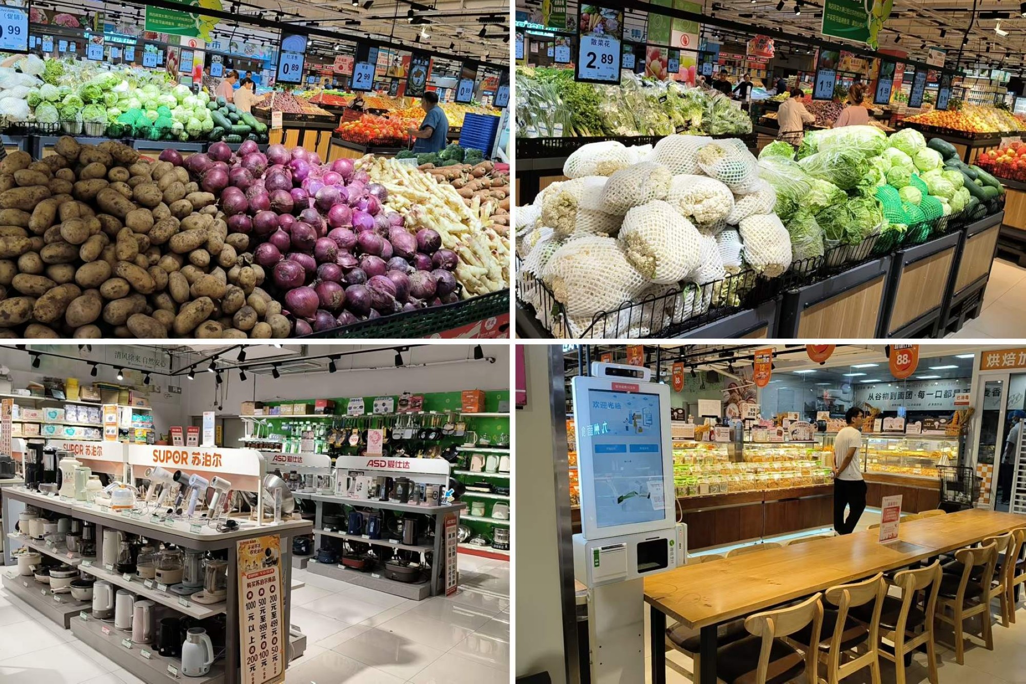 生鮮區(qū)全面升級為電子價簽,價格實時更新,清晰易讀;貨架區(qū)調(diào)低高度,提升了視覺通透性,顧客選取貨品更便捷;通道進(jìn)一步拓寬,顧客購物更順暢、更舒適。同時,賣場內(nèi)新增堂食區(qū),精準(zhǔn)覆蓋顧客購物之余的用餐需求,進(jìn)一步豐富消費場景。