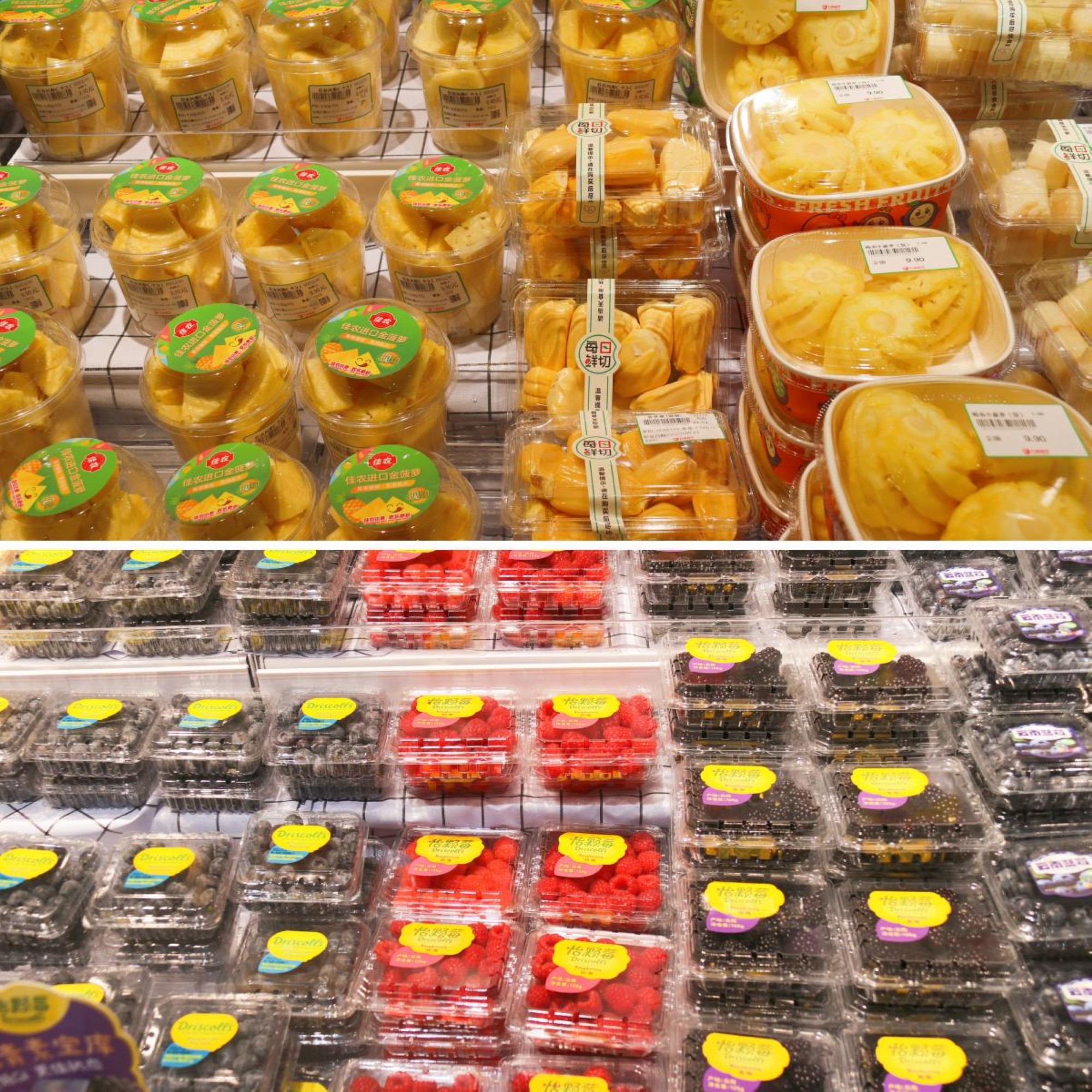 果蔬區(qū)引進了全球直采、產(chǎn)地直達的各地特色水果,為消費者帶來第一手的新鮮食材;還增加了新鮮果切等項目,顧客即買即食,方便、快捷又貼心。