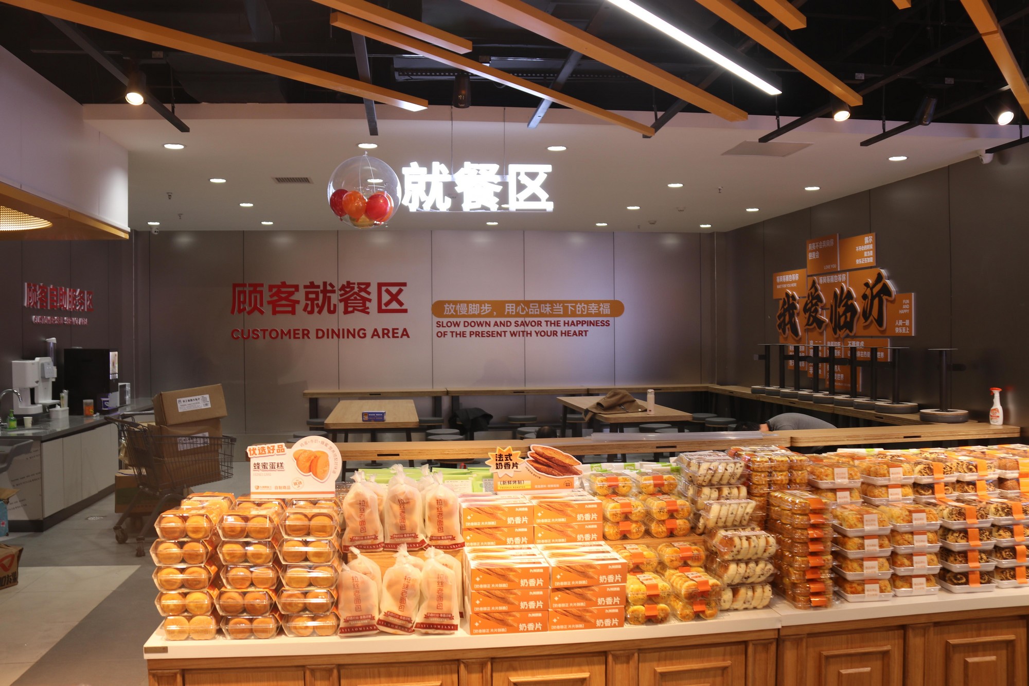 除品類擴容外,門店還新增顧客就餐區(qū),打破了“逛”與“吃”的場景邊界,搭配自助咖啡機、自助豆?jié){機等服務(wù)設(shè)備,讓消費者在購物間隙即可便捷享受美食。