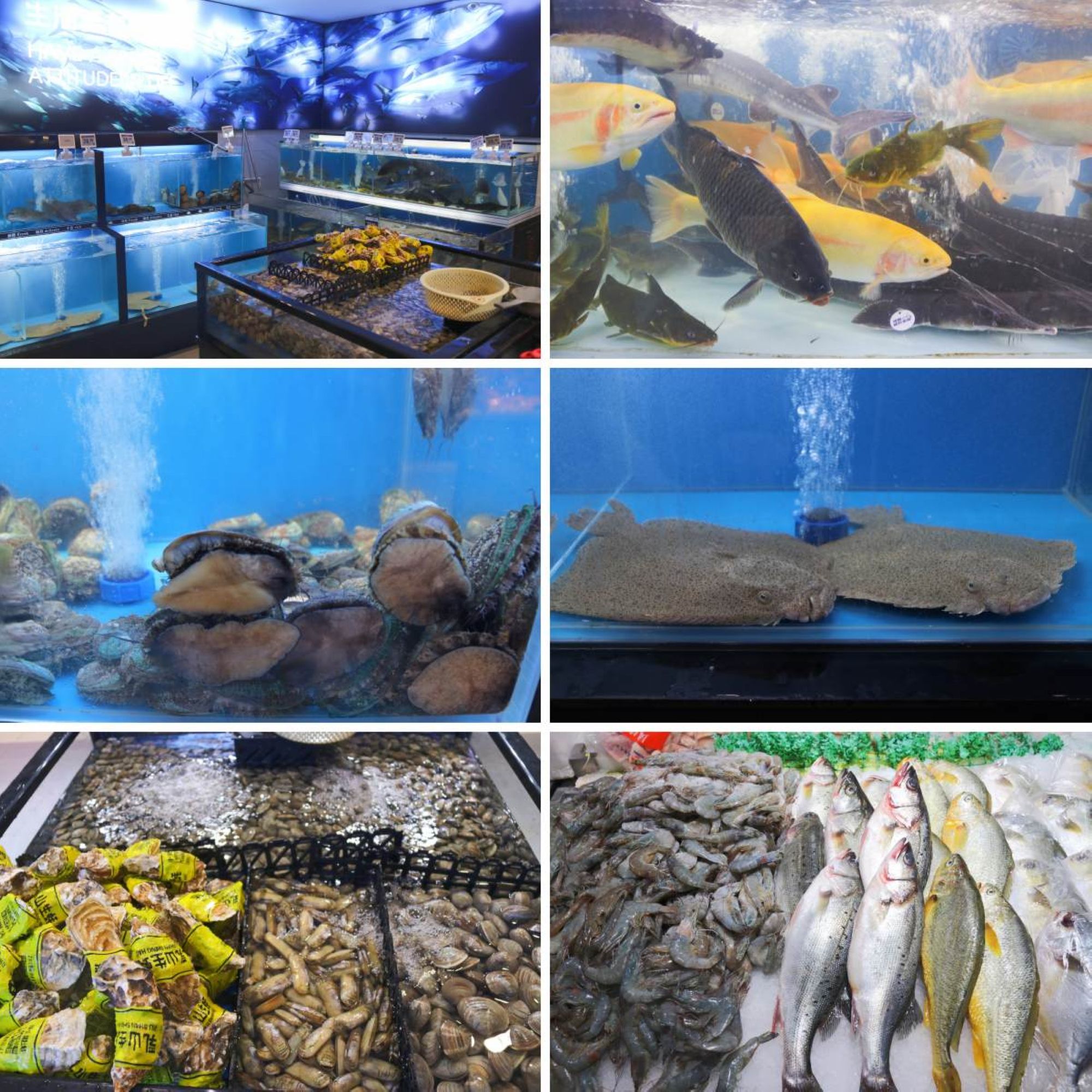 水產(chǎn)畜產(chǎn)區(qū)擴大陳列面,完善品類。增加黑椒牛排、番茄牛排、黑椒牛柳等新品,還引進各類活魚、貝類、蝦類等水產(chǎn)品,品種豐富,為顧客提供更多新鮮選擇。