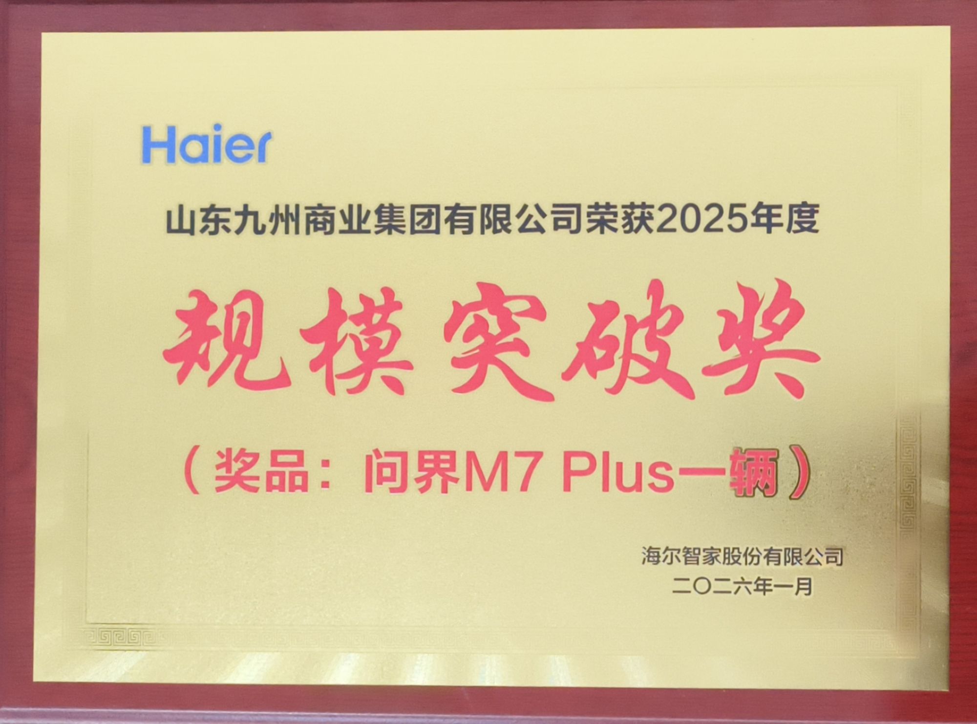 近日,海爾集團(tuán)V58客戶2025年度總結(jié)會圓滿召開,九州家電憑借突出的經(jīng)營業(yè)績榮獲海爾集團(tuán)2025年度海爾空調(diào)規(guī)模突破獎。九州家電總經(jīng)理王志軍出席會議并代表企業(yè)領(lǐng)取了汽車獎勵。